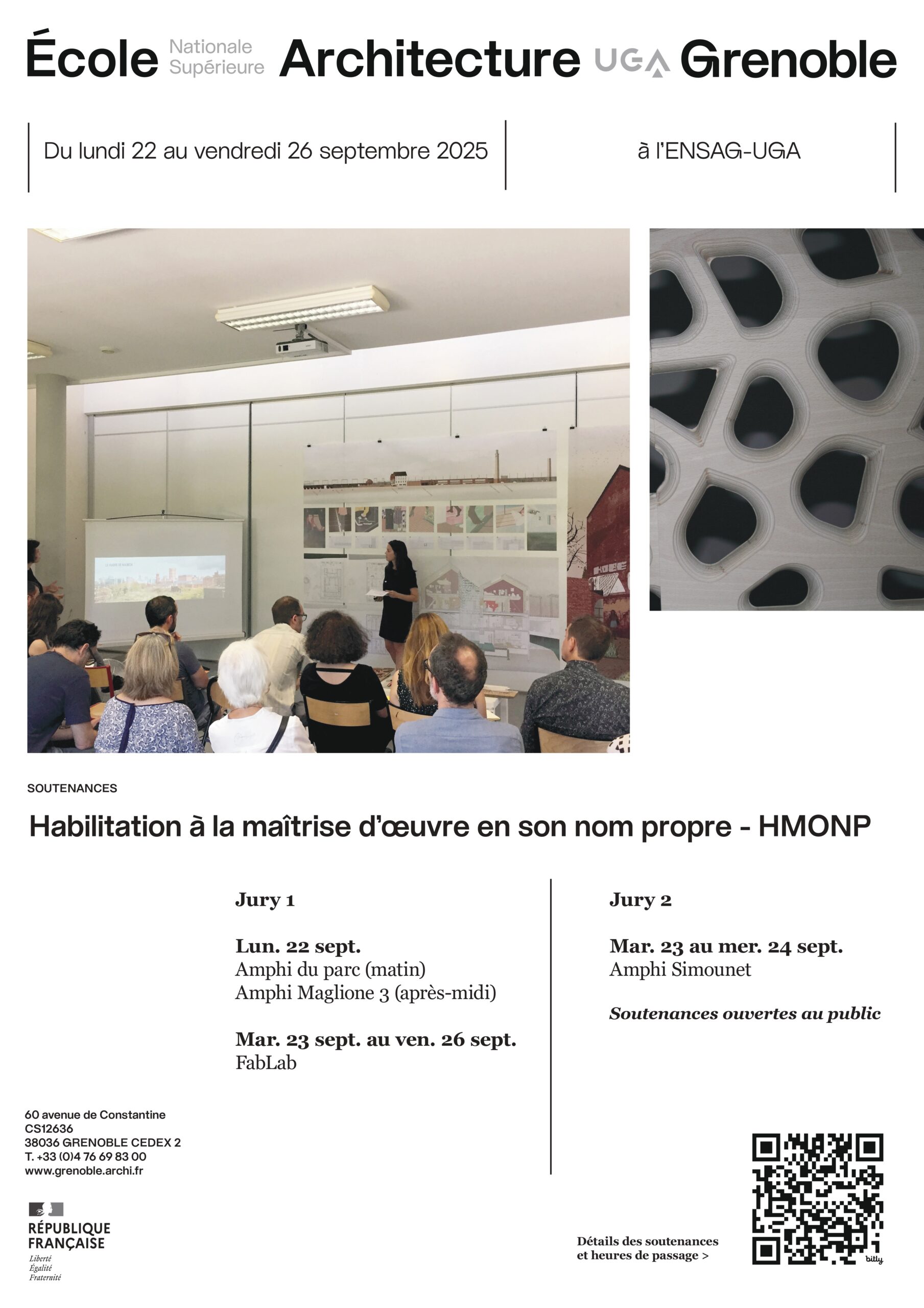 Les soutenances pour la formation HMONP (Habilitation à la Maîtrise d’Œuvre en Nom Propre) se dérouleront du lundi 22 au vendredi 26 septembre 2025 et sont ouvertes au public.